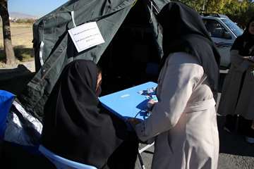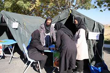 برپایی چادر سلامت در حاشیه برگزاری مراسم پیاده روی